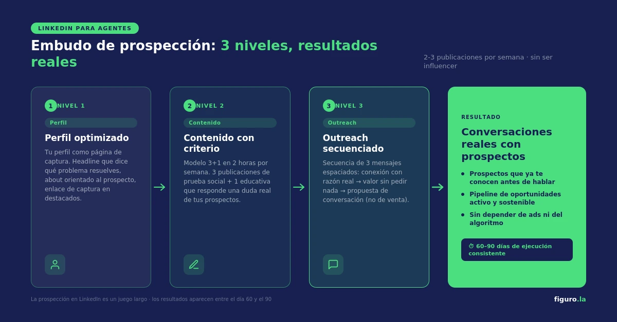 La prospección en LinkedIn es un juego largo. Los agentes que esperan resultados en la primera semana son los que lo abandonan en la tercera.